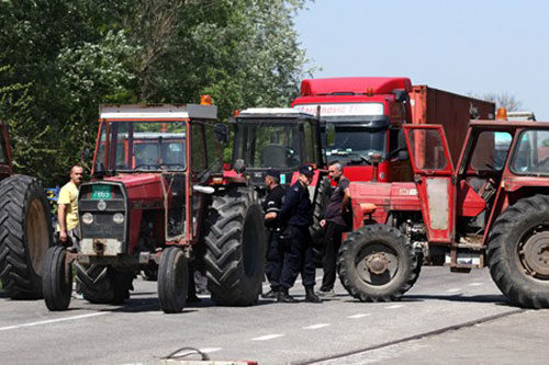 Oko 200 meštana Gornja Toponica, Velepolje, Trnava i drugih niških sela blokirali su jutros traktorima, frezama i drugom mehanizacijom put u Gornjoj Toponici.